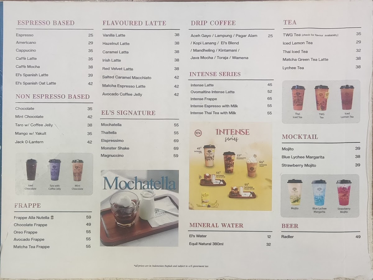 EL'S Coffee Bar Boemi Kedaton Mall Menu